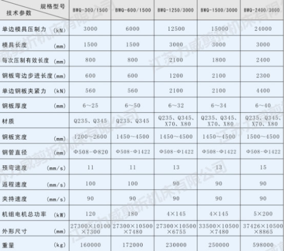 該機(jī)是大口徑直縫埋弧焊管生產(chǎn)線上的主機(jī)之一,是用于鋼板板邊預(yù)彎的專用機(jī)組。預(yù)彎?rùn)C(jī)主要由C型機(jī)架、油缸單元、下橫梁、輸送輥、換模裝置、模具及移動(dòng)裝置、底座、前后輸送輥道、電氣、液壓和潤(rùn)滑系統(tǒng)組成。主要用于制管成型前的鋼板板邊預(yù)彎,即將制管用的鋼板經(jīng)銑變后逐段送入機(jī)器上、下模具之間,在上、下模具的壓力下使材料發(fā)生流動(dòng)而彎曲,更換并調(diào)整模具的相對(duì)位置可以得到板邊曲率半徑與成品鋼管的半徑非常接近的彎邊。兩臺(tái)對(duì)放,鋼板可在兩側(cè)同時(shí)進(jìn)行彎邊。